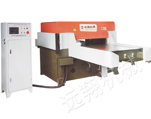 3、主机采用双油缸、双曲柄连杆平衡、四柱精密导向机构,保证每一个裁断位置的裁断深度完全相同。