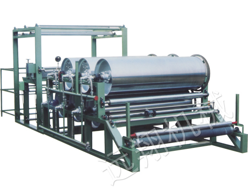 用于制鞋行业鞋帮布的括浆复合,亦可作为中底单层括浆。采用多烘筒烘干复合,结构简单,操作方便。(注:有电加热、蒸气加热和导热油加热三种方式可供选择)。